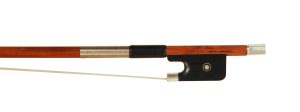 This stick and the significant wood selection for this bow and the other cello bow were not made by an amateur bow maker. This had to be a seasoned bow maker, possibly from southern California. I just don’t know. It is not a real Sartory but the detail on the copyist’s bow is beautiful to see. The brand is very small, all caps and inverted on the player’s side and there is no country of origin stamped on the bow.
