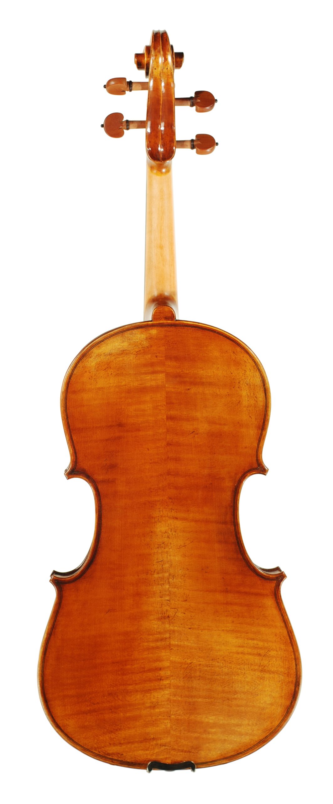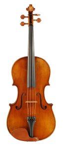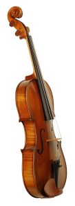 A meticulously hand-carved Stradivari-style instrument featuring a premium spruce top. Highly flamed two-piece maple back, ribs, and scroll. Beautiful hand-applied multi-layer spirit varnish in the early 20th century Markneukirchen German style. Fitted in English boxwood pegs and chinrest, Despieu B grade bridge, and a German Wittner tailpiece.