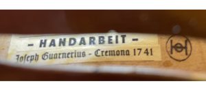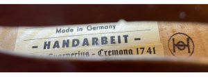 This Guarneri model instrument was a template that he followed almost his entire career. The woods are choice, with a two-piece highly flamed maple back plate with matching ribs, neck, and scroll. The top table is straight even grain spruce, almost perfect. The choice in wood is a trademark of Hausmann’s work and so is his varnish. The violin is branded inside next to the right side of the label on the inside back and on the back of the violin below the tongue. The same brand in both areas. Hausmann instruments have enjoyed definite success in his making, and his instruments all have this rich orange/gold oil varnish all on top of yellow golden base. His mastery of traditional craftsmanship shows in his execution of the lines in the scroll and the purfling work around the perimeter of the violin. Everything in his workmanship is so clean. We have meticulously gone over the violin which is in very good condition and completed the setup, all new in traditional ebony fittings.