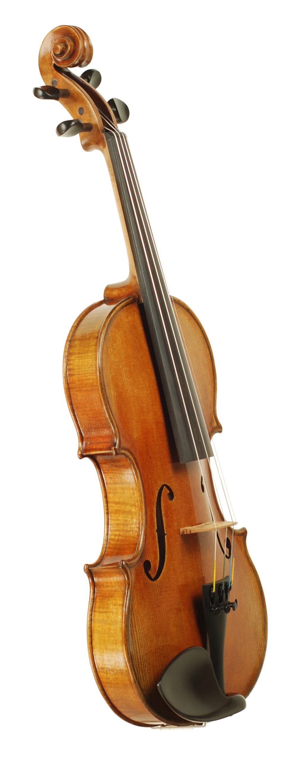 The violin has unmistakable French character in construction, varnish coloring, and weight of the instrument. But it’s the sound that makes this violin truly noticeable. The instrument is powerful and radiant, both at the same time. It strikes me as having a little edge to the bottom voice, which I love. The edginess helps create overtones and adds to the sophistication of the overall color. The violin has a good-to-great response off the strings and resonates. The bass side and treble side work together and I find no fault even up high in positions. The violin has a WOW sound and is a gem.
